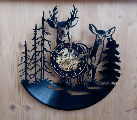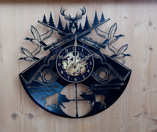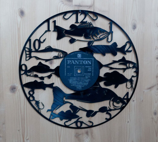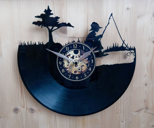 Motivuhren aus Schallplatten für Jäger und Fischer
